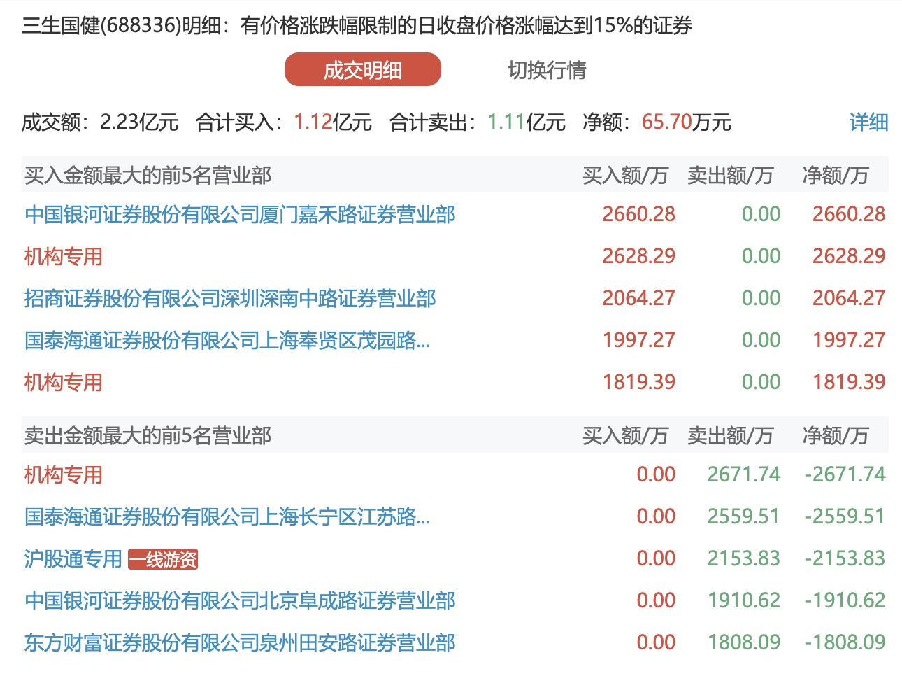 三生国健今日涨15.31% 二机构专用席位净买入4447.68万元三生国健今日涨15.31% 二机构专用席位净买入4447.68万元